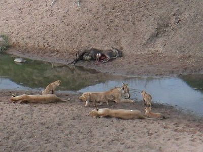 初日に続きライオンの生態を追う。どうも前のロッジは野生動物園のようなものであり。動物は自由に暮らしているが、立体的でおおよその生息領域があるようだ。このロッジはより平面的で、ありとあらゆるところで動物と遭遇する。 |