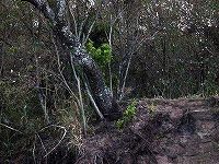 レオパルドの生息場所を俳徊するものの、なかなか出てこない。と、いっしゅん、ポールがシッポを発見。うまく撮影できなかったが、木の上にいるレオパルドを発見。かなり警戒心が強いらしく、あっというまに森のなかに。 |